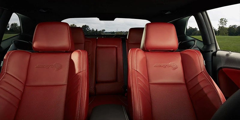 Inside the Dodge Challenger, you'll find plenty of room for up to five adults to ride comfortably. The SXT has keyless entry with a push-button start, dual-zone automatic climate control, a power-adjustable driver's seat, a six-speaker sound system, and a 7-inch touchscreen with Apple CarPlay and Android Auto. Higher trims add heated and ventilated front seats and an 8.4-inch touchscreen. Additional interior upgrades include leather upholstery for all seats, a suede-wrapped steering wheel, and a turn-by-turn navigation system.