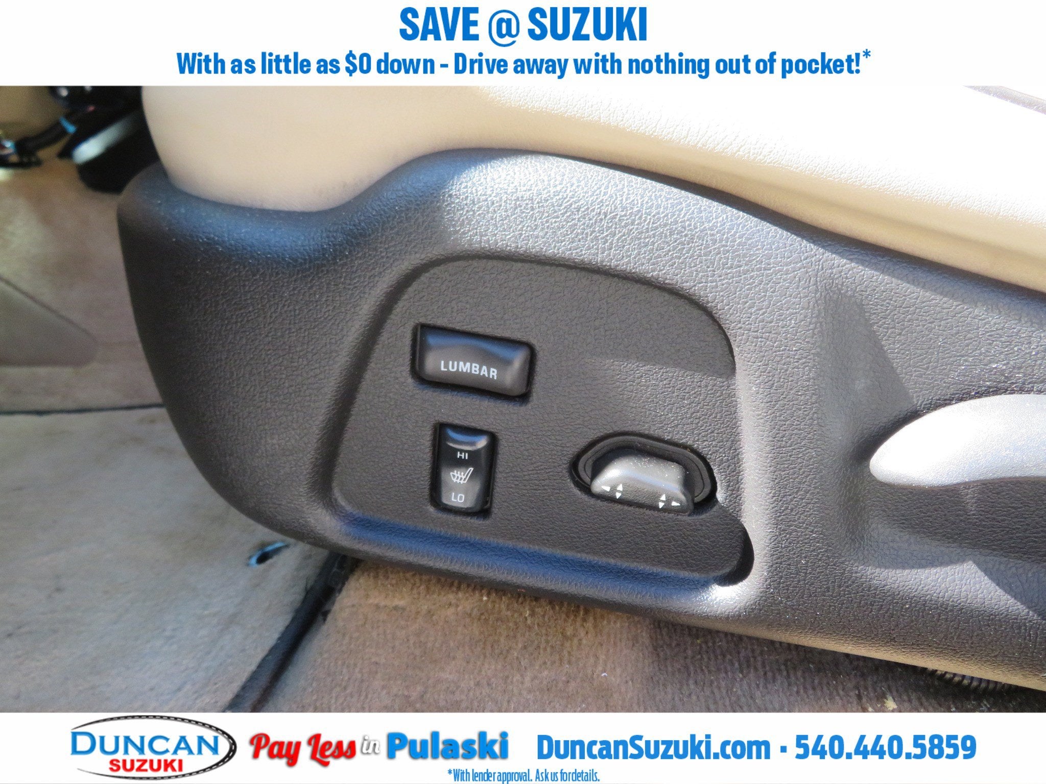 - Seat adjuster, front passenger 8-way power with power lumber control
