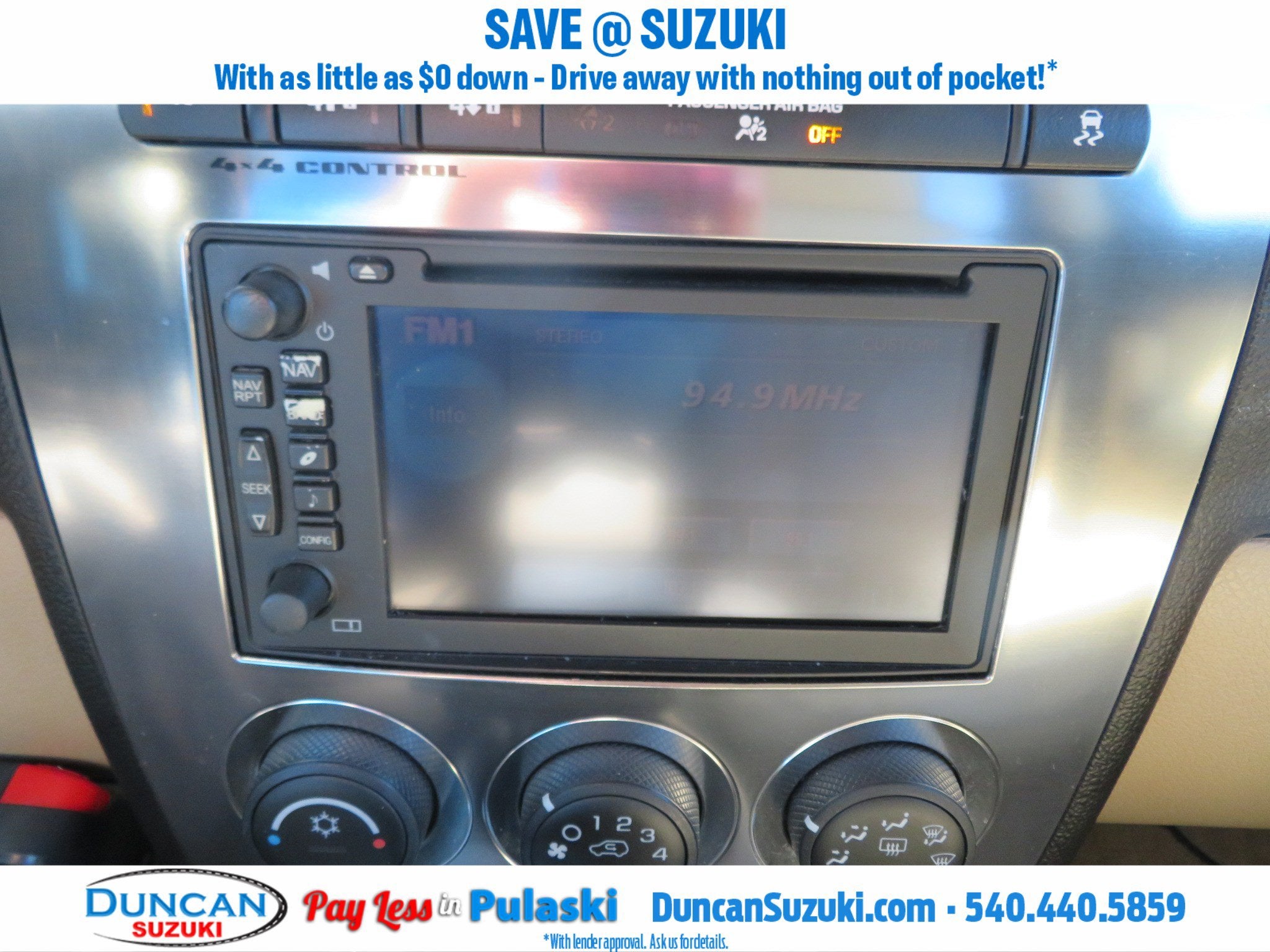 Chrome Appearance Package, Heavy-Duty Handling/Trailering Suspension Package, Trailering Equipment, 16 x 7.5 Thin-Spoke Chromed-Aluminum Wheels, 4-Wheel Disc Brakes, 4.10 Rear Axle Ratio, 8-Way Power Driver Seat Adjuster, 8-Way Power Front Passenger Seat Adjuster, ABS brakes, Air Conditioning, Alloy wheels, AM/FM radio: XM, AM/FM Stereo w/CD/DVD/XM Satellite, AM/FM Stereo w/XM Satellite, Auto-dimming Rear-View mirror, Body-Color Grille, Carpeted Cargo Area Oversized Floor Mats, Carpeted Front Oversized Floor Mats, Carpeted Rear Seat Oversized Floor Mats, CD player, Compass, Driver & Front Passenger Visors, Driver door bin, Dual front impact airbags, Electronic Stability Control, Emergency communication system: OnStar Safe & Sound, Extra Large Power Sunroof, Fabric Cargo Cover, Front anti-roll bar, Front Bucket Seats, Front Center Armrest, Front fog lights, Front reading lights, Front Reclining Bucket Seats, Front wheel independent suspension, Fully automatic headlights, Heated Driver & Front Passenger Seats, Illuminated entry, Leather Seating Surfaces, Leather-Wrapped Shift Handle, Leather-Wrapped Steering Wheel, Low tire pressure warning, Monsoon Audio System Feature, Occupant sensing airbag, Outside temperature display, Overhead airbag, Panic alarm, Passenger door bin, Passenger vanity mirror, Power door mirrors, Power steering, Power windows, Rear anti-roll bar, Rear Vision Rear-View Camera System, Rear window defroster, Rear window wiper, Remote keyless entry, Roof rack: rails only, Security system, Speed control, Split folding rear seat, Tachometer, Tilt steering wheel, Traction control, Universal Home Remote, Uplevel Decor, Variably intermittent wipers, Voltmeter, and XM Satellite Radio.