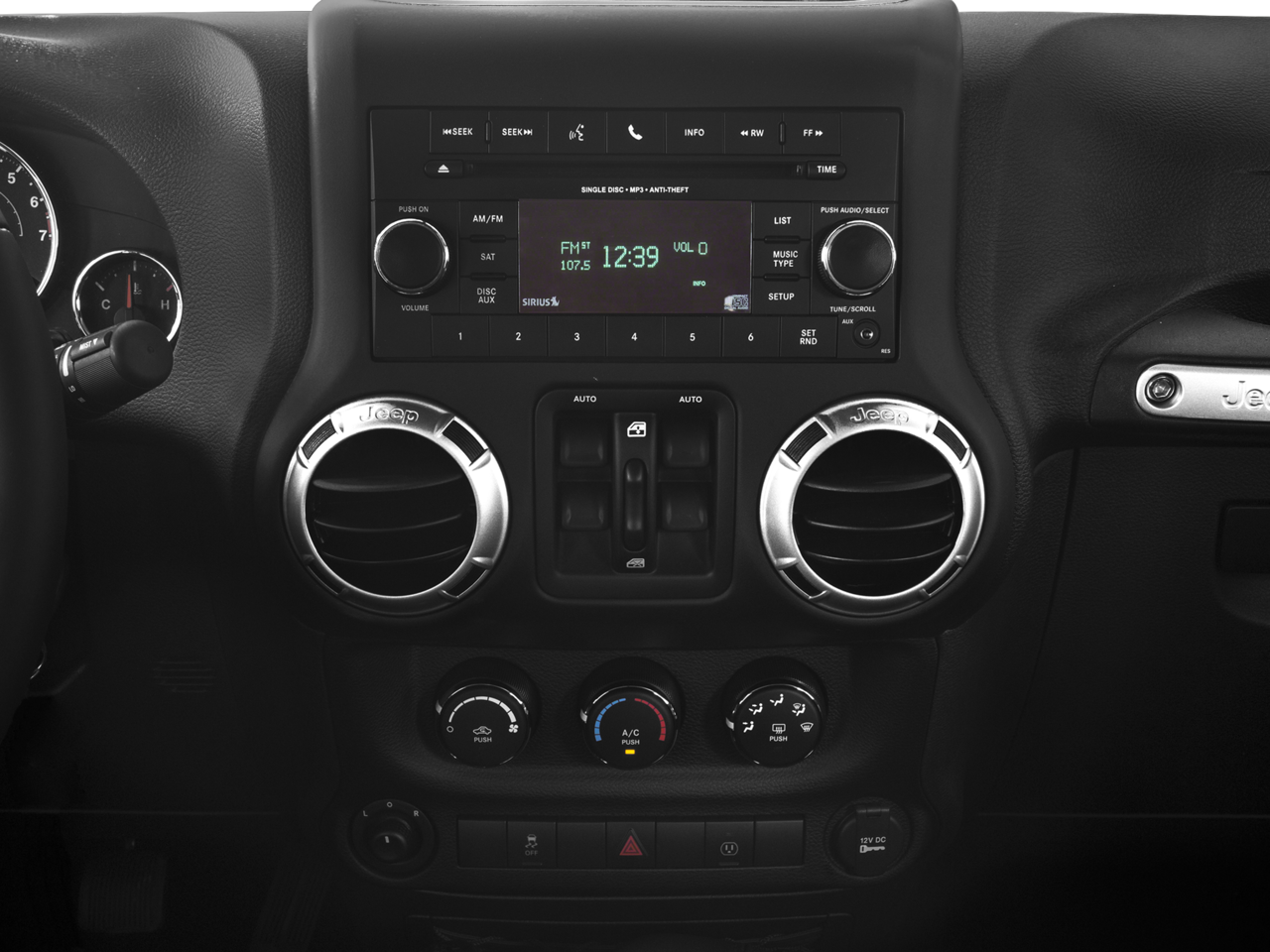 Quick Order Package 24G (Body Color Appliques Front Bumper, Body Color Appliques Rear Bumper, and Body Color/Accent Color Grille), Trailer Tow Group (Class II Receiver Hitch and Trailer Tow w/4-Pin Connector Wiring), 18 x 7.5 Polished Satin Carbon Wheels, 3.21 Rear Axle Ratio, 4-Wheel Disc Brakes, 8 Speakers, ABS brakes, Air Conditioning, Alloy wheels, Alpine 9-Speaker w/All Weather Subwoofer, AM/FM radio: SiriusXM, Anti-Spin Differential Rear Axle, Audio Jack Input for Mobile Devices, Auto-dimming Rear-View mirror, Black 3-Piece Hard Top, Brake assist, CD player, Cloth Seats w/Adjustable Head Restraints, Compass, Driver door bin, Driver vanity mirror, Dual front impact airbags, Electronic Stability Control, Freedom Panel Storage Bag, Front anti-roll bar, Front Bucket Seats, Front Center Armrest w/Storage, Front fog lights, Front reading lights, Fully automatic headlights, Heated door mirrors, Heated Front Seats, Heavy Duty Suspension w/Gas Shocks, Illuminated entry, Integrated roll-over protection, Leather steering wheel, Leather Wrapped Steering Wheel, Low tire pressure warning, Manufacturer's Statement of Origin, Occupant sensing airbag, Outside temperature display, Panic alarm, Passenger door bin, Passenger vanity mirror, Power door mirrors, Power steering, Power windows, Radio data system, Radio: 130, Rear anti-roll bar, Rear Window Defroster, Rear Window Wiper/Washer, Remote keyless entry, Security system, Speed control, Split folding rear seat, Steering wheel mounted audio controls, Sunrider Soft Top, Tachometer, Tilt steering wheel, Traction control, Trip computer, and Variably intermittent wipers.