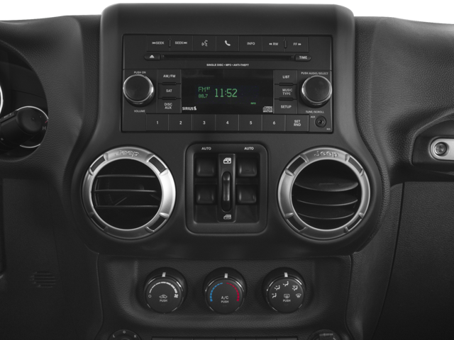 Connectivity Group (Remote USB Port and Uconnect Voice Command w/Bluetooth®), Jeep 75th Anniversary Package, Quick Order Package 24H 75th Anniversary (DISC) (Anti-Spin Differential Rear Axle, Body Color Grille w/Bronze Accent, Bronze Steel Front Bumper, Bronze Trail Rated Badge, Driver Height Adjuster Seat, Heated Front Seats, IP Grab Handle w/75th Anniversary Logo, Leather Seat w/Cloth (Ombre Mesh) (DISC), Low Gloss Black Wrangler Decal, MOPAR Slush Mats, Moroccan Sun Interior Accents, and Wheels: 17 x 7.5 Aluminum Bronze (DISC)), Trailer Tow Group (Class II Receiver Hitch and Trailer Tow w/4-Pin Connector Wiring), 18 x 7.5 Polished Satin Carbon Wheels, 3.21 Rear Axle Ratio, 4-Wheel Disc Brakes, 40GB Hard Drive w/28GB Available, 5-Year SiriusXM Travel Link Service, 6.5 Touchscreen Display, 8 Speakers, ABS brakes, Air Conditioning, Alloy wheels, AM/FM radio: SiriusXM, Audio Jack Input for Mobile Devices, Auto-dimming Rear-View mirror, Body Color 3-Piece Hard Top, Brake assist, CD player, Cloth Seats w/Adjustable Head Restraints, Compass, Driver door bin, Driver vanity mirror, Dual front impact airbags, Electronic Stability Control, Front anti-roll bar, Front Bucket Seats, Front Center Armrest w/Storage, Front fog lights, Front reading lights, Fully automatic headlights, GPS Navigation, Heated door mirrors, Heavy Duty Suspension w/Gas Shocks (DISC), Illuminated entry, Integrated roll-over protection, Leather steering wheel, Low tire pressure warning, Manufacturer's Statement of Origin, Occupant sensing airbag, Outside temperature display, Panic alarm, Passenger door bin, Passenger vanity mirror, Power door mirrors, Power steering, Power windows, Radio data system, Radio: 130, Radio: 430 Nav, Radio: 430N (DISC), Rear anti-roll bar, Remote keyless entry, Remote Start System, Security system, SiriusXM Travel Link, Speed control, Split folding rear seat, Steering wheel mounted audio controls, Tachometer, Tilt steering wheel, Traction control, Trip computer, and Variably intermittent wipers.