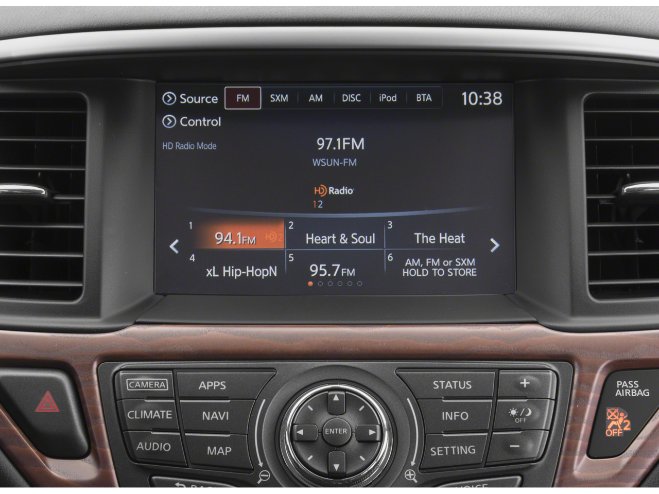 - Radio: Bose Premium Audio w/AM/FM/CD & 13 Speakers -inc: 8" color display w/multi-touch control, voice recognition for audio, Bluetooth® and vehicle information, including music search by voice, HD Radio, Sirius XM Satellite, USB connection ports (2) for iPod interface and other compatible devices, Bluetooth® hands-free phone system, streaming audio via Bluetooth®, hands-free text messaging assistant and RCA AUX input (inside center console), NissanConnect w/Navigation and services includes voice recognition for navigation, one-shot voice destination entry, SiriusXM Traffic w/3 years of service and digital clock, NissanConnect Services powered by SiriusXM includes automatic collision notification; emergency call and stolen vehicle locator; remote services including start/stop, lock/unlock, flash lights, sound horn; customizable alerts including drive zone, valet, curfew and speed alerts; dealer service scheduling and maintenance alerts