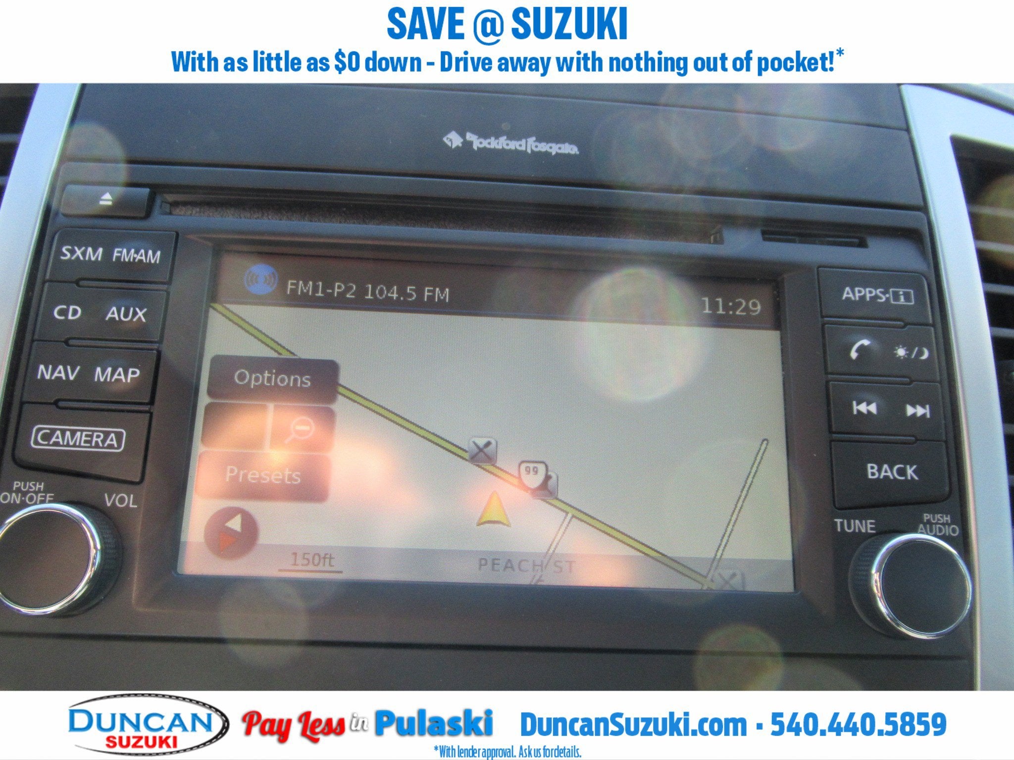 - Radio: Rockford Fosgate Premium Audio System -inc: 10 speakers w/subwoofer, NissanConnect w/navigation and NissanConnect mobile apps, 5.8" color touch screen display, Nissan Navigation System w/voice guidance, Nissan voice recognition for navigation and audio, SiriusXM satellite radio, SiriusXM traffic, SiriusXM travel link (fuel prices, weather, movie listings, stock info and sports), auxiliary input, steering wheel audio controls, USB connection port for iPod Interface and other compatible devices, streaming audio via Bluetooth®, Bluetooth® hands-free phone system, Siri Eyes Free and hands-free text messaging assistant